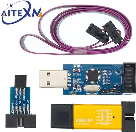 1PCS AVRISP Atmel STK500 AVR Programmer USB Atmaga Attiny + 6 Pin Adapter Board USB AVRISP Mkii XPII