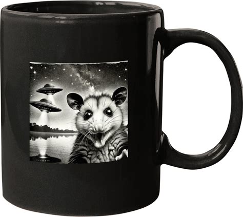 Alien Invasion Humor Ceramic Mug - 11Oz Black Coffee Cup With Opossum & Ufos Design - Fun Sci-Fi Gift For Adult Fans