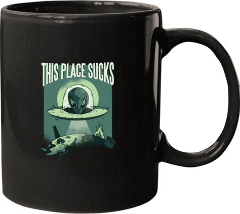 This Place Sucks Funny Alien Mug - 11Oz Black Ceramic Coffee Cup, Dishwasher And Microwave Safe, Customizable Gift For Stargazers
