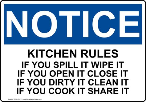 OSHA NOTICE Kitchen Rules If You Spill It Wipe It If Sign, Plastic | Size: 7X5, ONE-29171 | By Compliancesigns