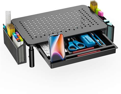 Simple Trending Metal Monitor Stand Riser And Computer Desk Organizer With Drawer For Laptop, Computer, iMac, Black
