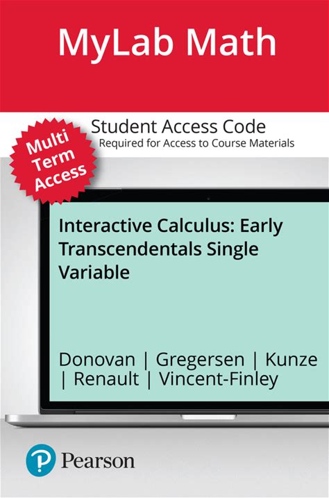 Mylab Math With Pearson Etext (Up To 24 Months) Access Code For Interactive Calculus, Early Transcendentals Single Variable 1st Edition A€" Pdf/Epub Version Downloadable