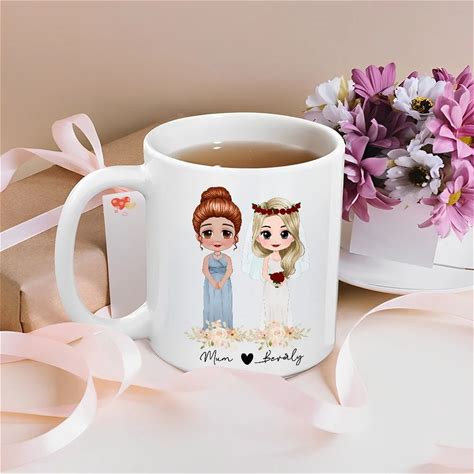 Personalized Mother Of The Bride Cartoon Characters Ceramic Mug With Name And Date Wedding Bridal Shower Gift For Bride Mom