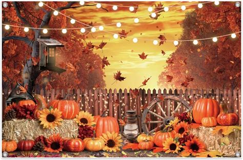 Leowefowa Fall Banner 7x5ft Polyester Harvest Hay Farm Pumpkin Patch Backdrop Sunflower Maple Photo Backdrops Thanksgiving Banner Decorations For